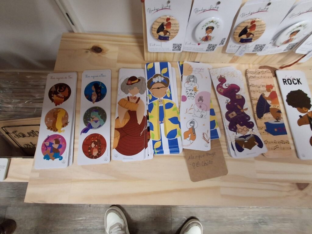 Dans une jolie échoppe colorée et accueillante, vous pourrez découvrir tout l’univers des Ladies : des illustrations originales, mais aussi une foule de goodies adorables — marque-pages, porte-clés, badges, pin’s, ainsi que quelques cadres décoratifs pour embellir votre intérieur.